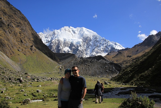 Salkantay is a 20,574-foot mountain, the highest of the Cordillera Vilcabamba, part of the Peruvian Andes, to the West of Machu Picchu. You can hike below its snow-capped peak (that has never been summited successfully!) along an icy river and up to 15,300 feet of elevation, rather than slogging the trekker-choked Inca trail. The company we chose, Salkantay Trekking, was run by a really friendly ex-guide, who even came to our hostel the night before to make sure that Eric was up for the task. At 6:00 the next morning we were picked up along with the rest of the group to begin our journey: five days and four nights, culminating at Machu Picchu.